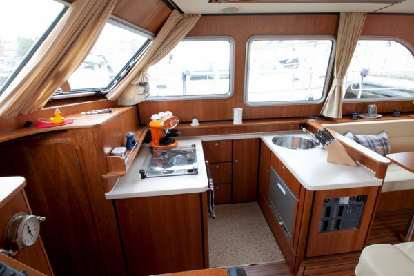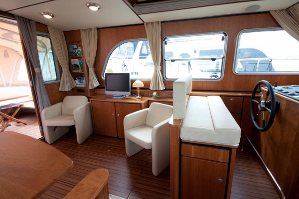The Lin 40.9 AC has three cabins and two showers and toilets, a spacious saloon/galley and a large aft deck with exterior seating and a table for alfresco dining. The boat has full heating, electric toilets, LED TV, bow thruster, teak aft deck, etc.