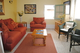 Stairs lead to the light and airy first floor accommodation with dual aspect living room which has a sofa bed, another dining area and bedroom with twin beds (which can be arranged as a double). This charming village property has all the comforts you would expect including: TV, Video player, CD player, Safe, Satellite TV and DVD player, Microwave, Washing Machine, Tumble Dryer, Fridge Freezer, Room Fans. Naturally you have internet access, although this is via a local "hotspot". | |||||||||||||||||||||